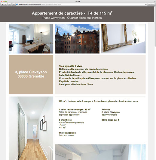 - Un site internet de 1 à 3 pages, détails techniques de toutes les pièces : m2, orientation, matériaux…